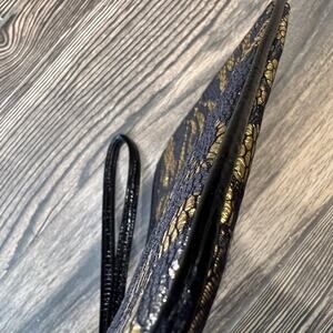 Shimmery gold with black lace overlay Betsey Johnson wristlet. In good used condition. Zipper closure. Inner zipper pocket.