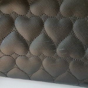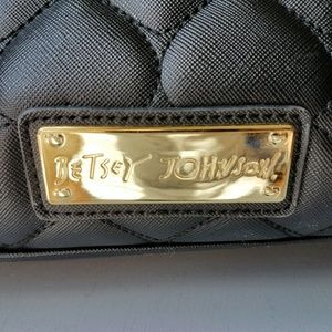 Adorable black Betsey Johnson heart embroidered tote with big white bow. Comes with detachable strap. Used a handful of times. Small white markers on front of bag that I can't seem to get off, but I'll keep trying!