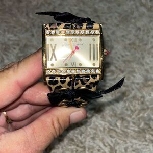 Betsey Johnson Large Square Faced Gold Tone Women’s Quartz Watch Cheetah Print B