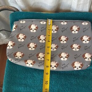 Betsey Johnson XOX Betsey 14x8x3 wristlet makeup bag large size for travel. Cute Shi-tzu pups with pink bows adorn this adorable case! VGUC