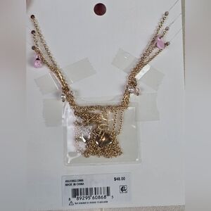 True to Betsey Johnson’s bold and eclectic aesthetic, this necklace exudes a fun, youthful energy while still feeling sophisticated. The piece is adorned with signature Betsey Johnson touches, including a pink enamel ladybug charm and an engraved heart tag at the clasp.