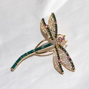 ✨Betsey Johnson Leandra Green Gold Pink Dragonfly Rhinestone Brooch