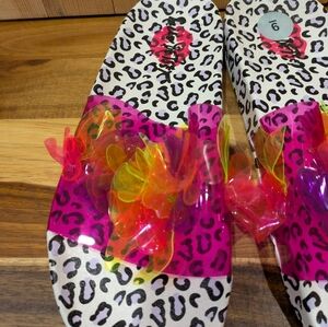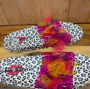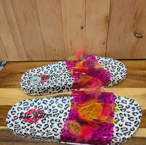 Betsey Johnson Leopard Print Slides with Pink and Multicolor Accents Size 9