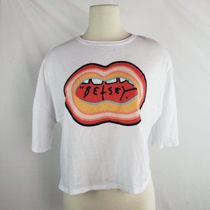 Neiman Marcus Last Call Betsey Johnson crop Tee.Betsey Johnson boyfriend crop tee in jersey with Betsey lip graphic.Sold out .