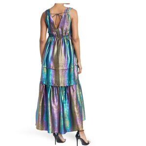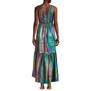 Betsey Johnson Liquid Rainbow Metallic Tiered Maxi Dress Hi-Low Sleeveless Smal