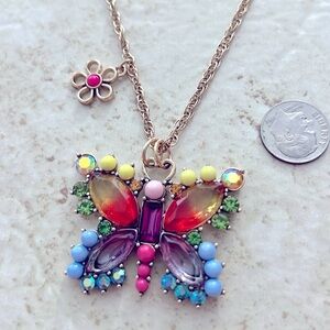 Betsey Johnson Love Fest Butterfly Multicolored Crystal Necklace NWT