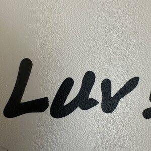 Betsey Johnson Luv Betsey Cat Wristlet Coin Purse Sleeping Cat. Faux cream leather wristlet with a picture of a sleeping cat/leopard with black spots and light pink ears and mouth. Luv Betsey printed on back. Wristlet strap is attached. Black zip opening at bottom of face. Signature Betsey black and white stripe fabric interior with fuchsia lips, "Luv Betsey by Betsey Johnson" stamped on lining. Interior looks new with no signs of use--very clean. Exterior is clean and free of stains; edges show minimal signs of use. There are no cracks, tears or holes. Excellent, clean condition.