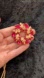 Stunning Magenta bead with gold accents and white glass rhinestones. The photos look more red but this is definitely a rich magenta dark pink color. 24” golden chain included.