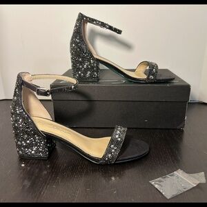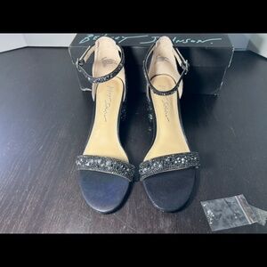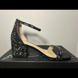 Betsey Johnson Mari Rhinestone Ankle Buckle Block Heel/Sandal Black/Silver Sz 7