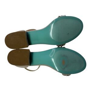 Betsey Johnson Mel Silver Rhinestone Embellished Block Heel Ankle Strap Sandals