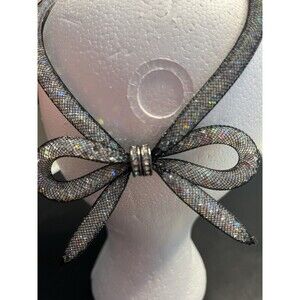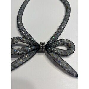 Betsey Johnson Mesh Ribbon Bow Tie Necklace Jewelry Crystal Gem Filled Jewel NWT
