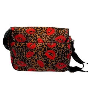 Betsey Johnson, Messenger Bag Crossbody Animal Print Red Lips, and Adjustable Strap.