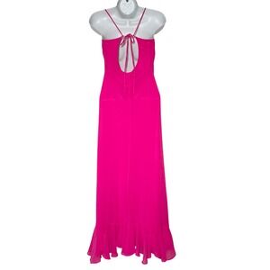 Betsey Johnson Midi Dress 4 Pink Strappy Rhinestone Open Back Ruffle Hem