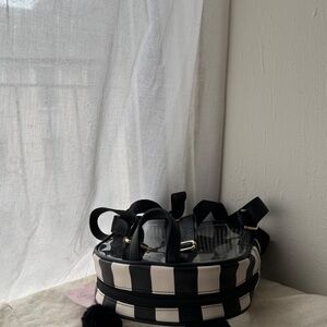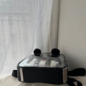 NWT. Betsey Johnson mini backpack. Mostly see-through so it might work for concerts and events where that is required. Or, use it to show off all your cute compacts, cosmetics, or plushes in style. OR use it to always find that thing, you know, the one that somehow always ends up at the bottom of your purse.