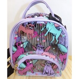 Betsey Johnson Mini Backpack Pug Unicorn Clear Front with Multicolor Pugs READ