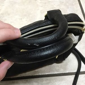 Brand new, missing tags (pictured by bow) Betsey Johnson black mini cross-body bag. 8" wide by 7" high. Detachable strap. Minor fabric lift on handle. (also pictured) Purchased this way.