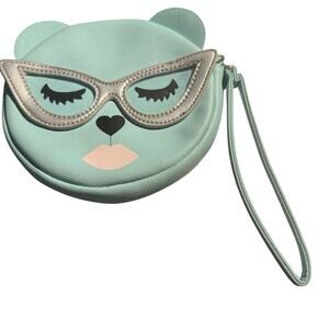 Betsey Johnson Mint Ice Blue Sleepy Bear Cat Eye Glasses Wristlet Purse