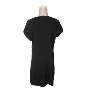 Betsey Johnson Mock Pearl Detailed Short Sleeve Scuba Dress. Features a crew neck and short sleeves with mock pearl detailing. Hidden back zip closure. Solid Lined. Shell 95% polyester 5% spandex. Dry clean only. Measurements in pictures.