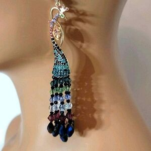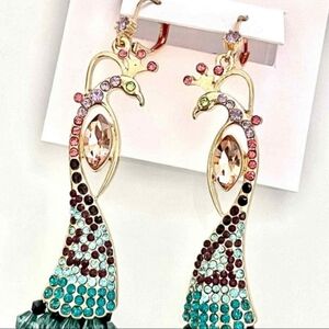 ☆Betsey Johnson Multicolored Peacock Rhinestone Beaded Statement Earrings☆
