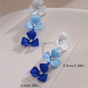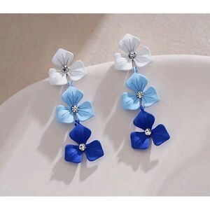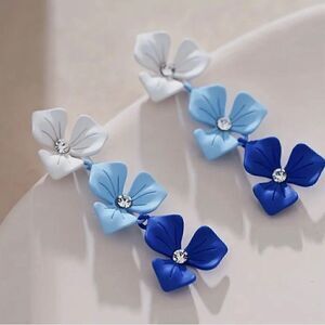 🩵 Betsey Johnson NEW TRIO Gradient Blue Flower Design Dangle Earrings - Elegant Drop & Dangle Jewelry - Delicate, Simple, Alloy, Female Gift, Hypoallergenic, Nickel-Free, and Durable, SO PRETTY 🩵