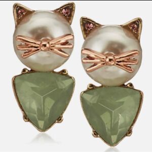 💚 Betsey Johnson NEW unique kitty cat studs. Stunning embellishments with faux pearls & jade. Includes cute whiskers & crystal ears. Post backs hypoallergenic & nickel free. Sweet kitties, meow 💚