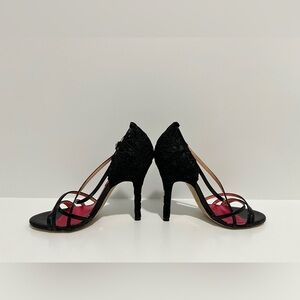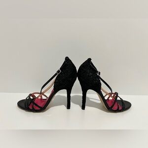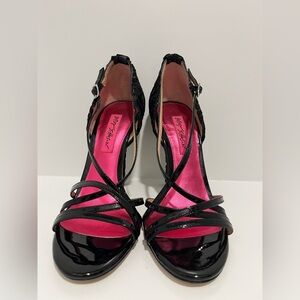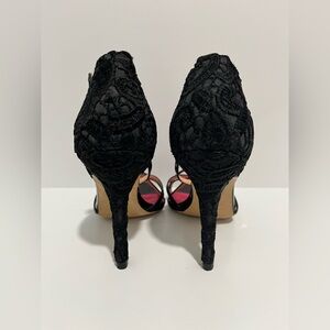Betsey Johnson NIKO Black and Pink Lace Stiletto Heels Size 7 patent leather