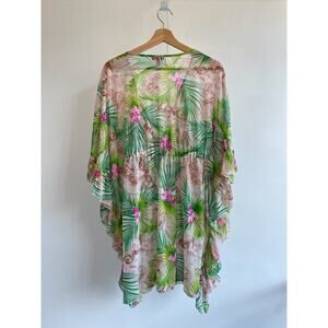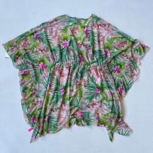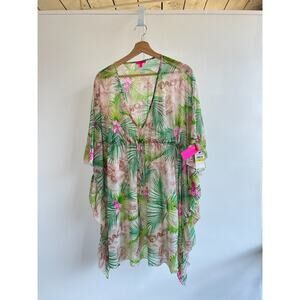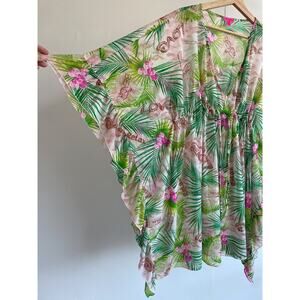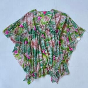 Betsey Johnson NWT Green Tropical Palms Knit Chiffon Caftan Top Sz M/L