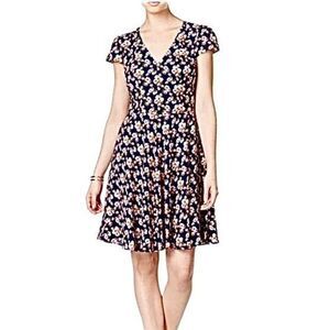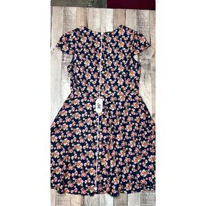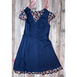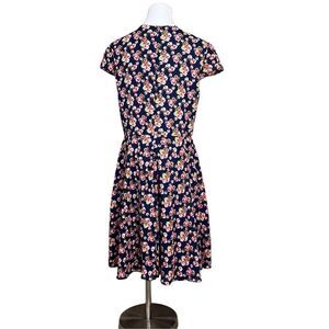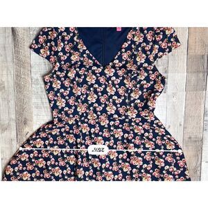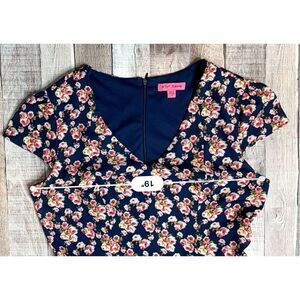 Betsey Johnson Navy Floral Cap Sleeve Swing Dress Modern Feminine sz 12