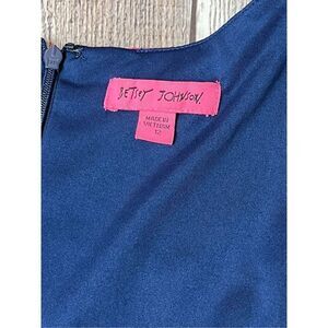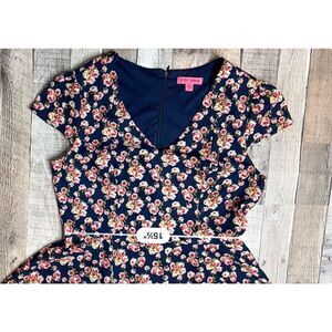 Betsey Johnson Navy Floral Cap Sleeve Swing Dress sz 12. Beautiful fit and design with full skirt and completely lined. Invisible back zipper. Item in excellent gently used condition. No known rips, tears, holes, stains or defects. Measurements in photos. Retails $120