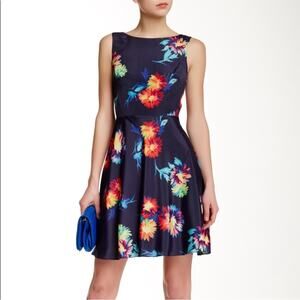 Betsey Johnson Navy Floral Fit & Flare Aline Dress Open Back