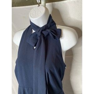 Betsey Johnson Navy Halter Fit & Flare Tie Neck Dress