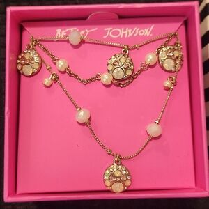 Betsey Johnson Necklace Gold Pink Pearls NEW Layered