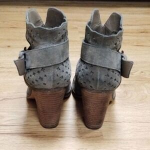 Betsey Johnson Neeto Suede Lazer Cut Buckle Side Stacked Heel Bootie Gray Size 7