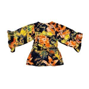 Betsey Johnson Neon Bell Sleeve Tie Back V-Neck Tunic | Size Medium
