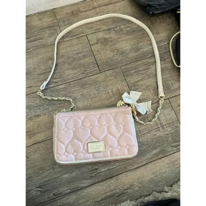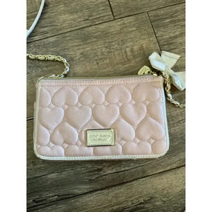Betsey Johnson New York Pink Quilted Heart bow Crossbody bag