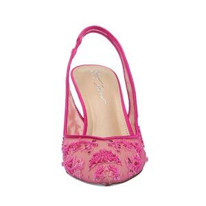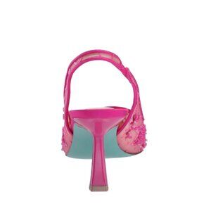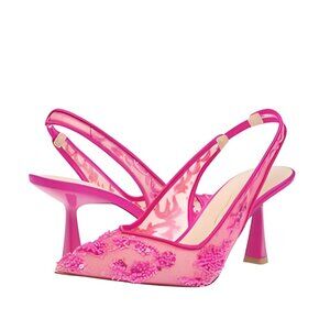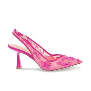 Add instant glamour with Betsey Johnson’s Nikki Slingback Heels in vibrant fuchsia. Featuring sparkling crystal bow accents and a chic slingback strap, these heels are made to stand out.