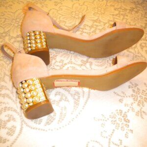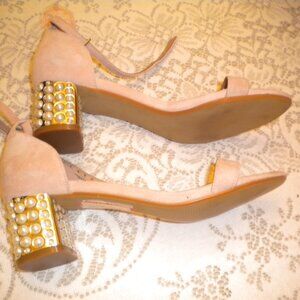 Betsey Johnson Nyla Blush Suede Pearl Embellished Metallic Silver Heel Sandals