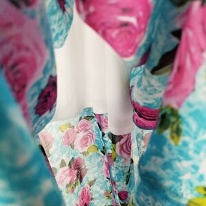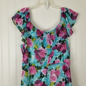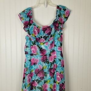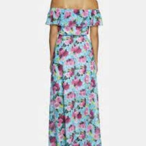 Betsey Johnson Off The Shoulder Floral Maxi Dress Size 14 Blue Roses Multicolor