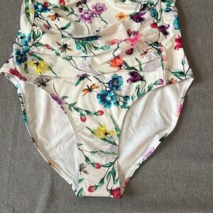 Betsey Johnson One Piece Bandeau Swimsuit Botarical Floral print size Med NWT