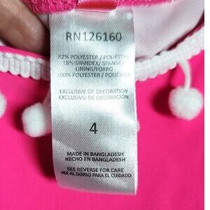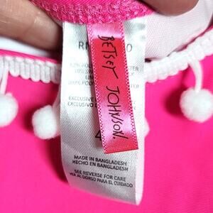 Betsey Johnson One-Shoulder Pom Pom One Piece Swimsuit in Hot Pink w/ White Pom Poms - it's a size 4 and in good pre-owned condition (clean gusset).