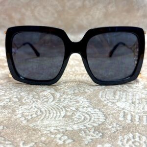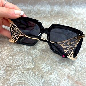 Betsey Johnson Oversized Square Black Sunglasses Gold Tone Metal Butterfly Arms.