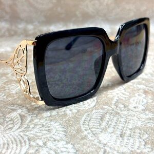 Betsey Johnson Oversized Square Black Sunglasses Gold Tone Metal Butterfly Arms