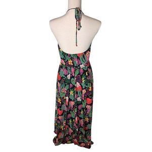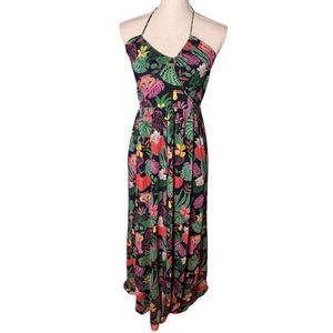 Betsey Johnson PAULINA TROPICAL PRINT HALTER MAXI DRESS IN RAVEN BLACK M