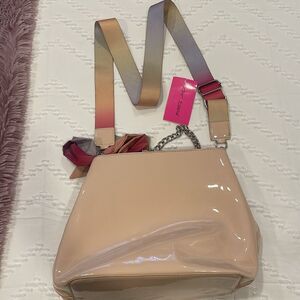 Betsey Johnson Patent Leather Bucket w Chain Swag - XOTRISTA - Sand - NWT