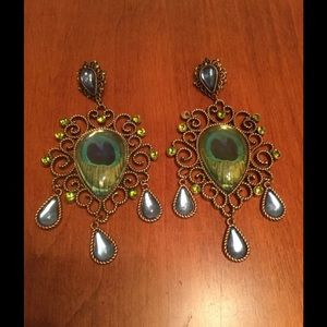 Beautiful and super rare Betsey Johnson Peacock earrings. Perfect for the Betsey collector. Item has a small defect and is missing a stone on the top left ( photo is included.) Hard to notice when on. Love these!!!