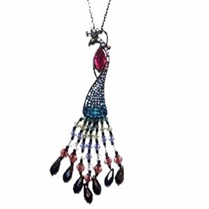 Betsey Johnson Peacock Necklace Black Blue Pink