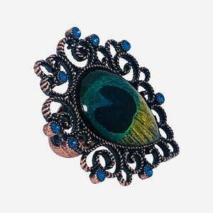 Betsey Johnson Blue Peacock Feather Cocktail Ring Sz 7 Vegetable Garden Morocco