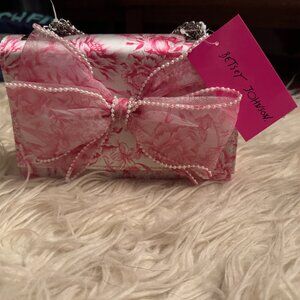 Say hello to our new Betsey Johnson bow cross body bag. It has a beautiful Imitation pearl trim that is sure to make you stand out in any crowd. It also features a convertible strap so you can wear it as a cross body or a shoulder bag.