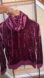 Gorgeous velvet velour purple/ red burgundy color. ( see pictures in different lighting ) Size small. Excellent Like new condition. 2 front pockets. Drawstring to neck
