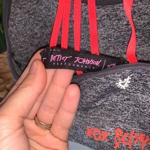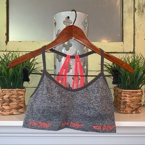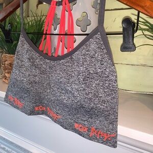 Betsey Johnson Performance Heather Gray Hot Pink Multi-Strap Sports Bra Size L. Racerback style.